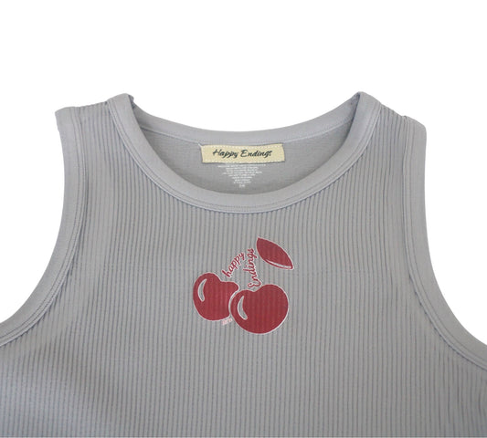 CHERRY CROP TANK TOP GRY